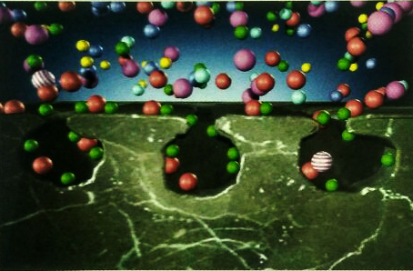 Shown under powerful magnification penetrating sealers contain various sealing molecules that penetarte and bond to the stone's surface.